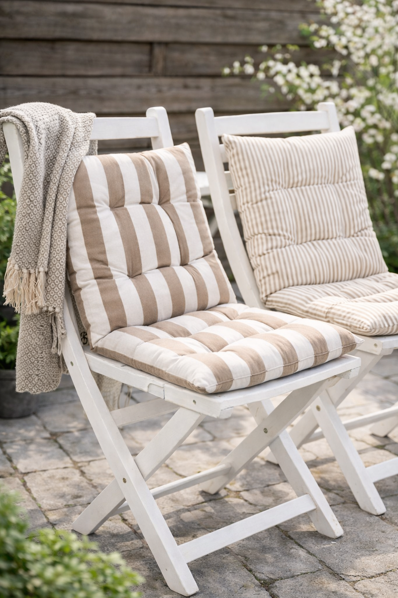 Get your outdoor space ready to enjoy the sunny days with soft cushions and beautiful touches.